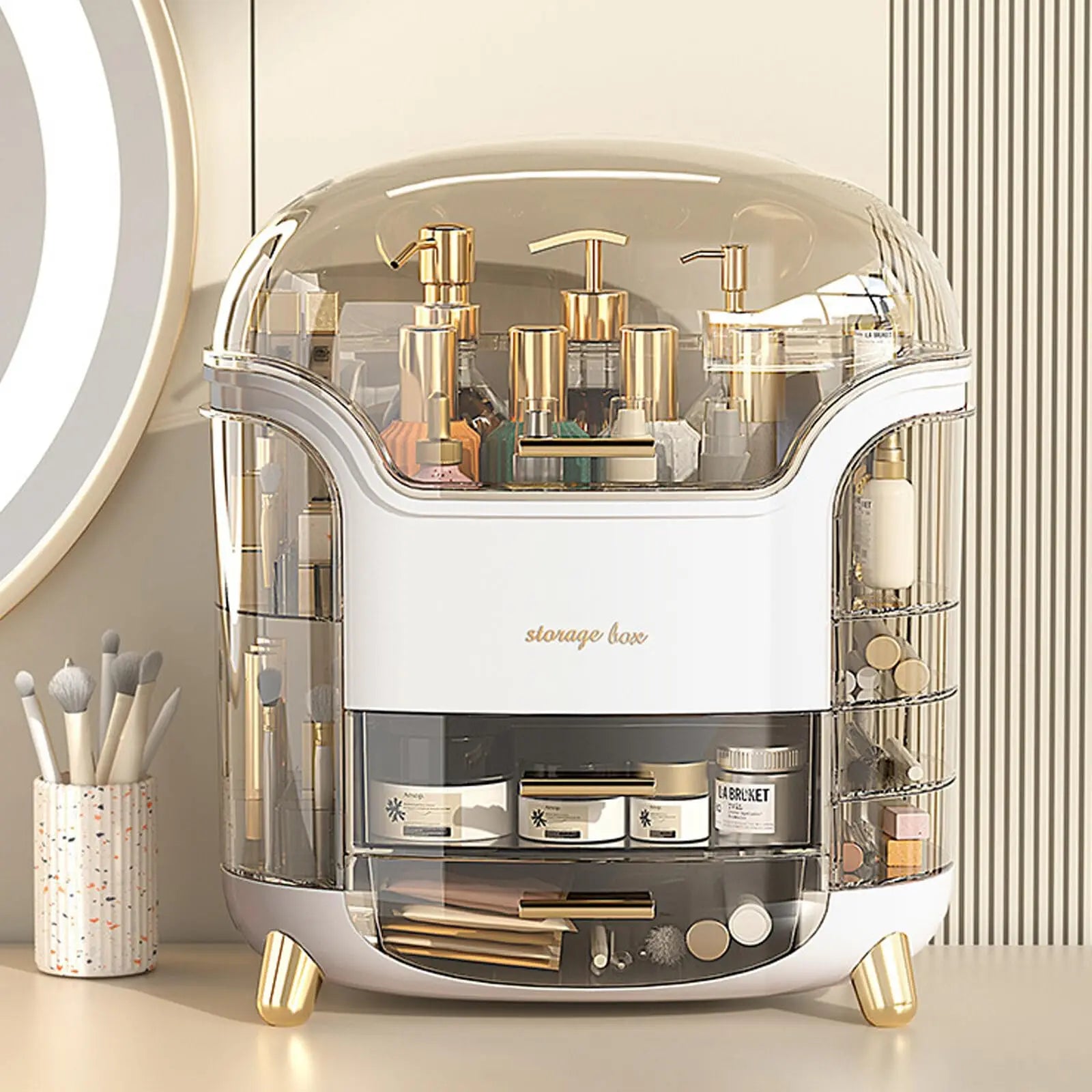 Découvrez le Nautylia Chic Organizer™, l'innovation qui réinvente le rangement de votre maquillage ! Avec sa grande capacité et son design astucieux, il devient l'allié incontournable pour une organisation parfaite et élégante.